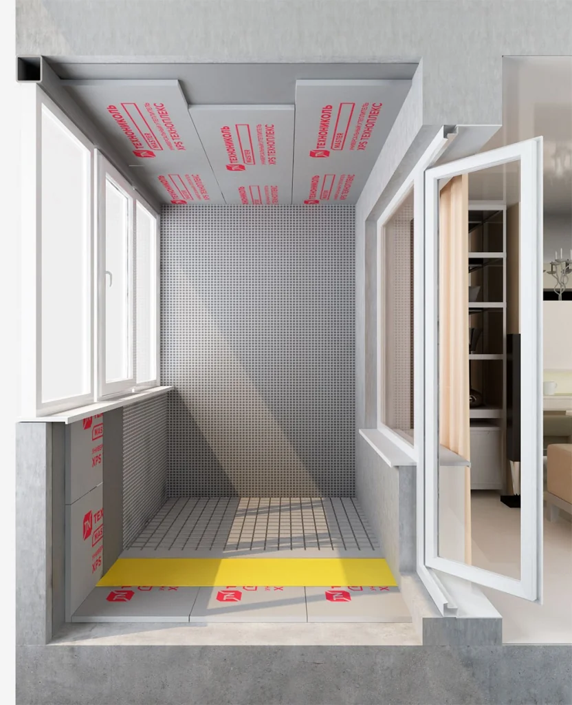 | Утепление балкона под ключ | 3–5 дней | от 45 000 руб. | ЭППС 30–50 мм, изолон фольг., ленты паро/гидро, герметики |